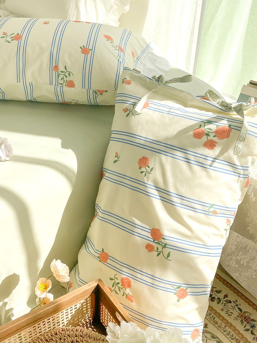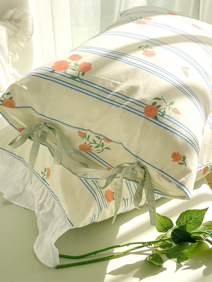 Retro Romantic Design: This pillowcase features a vintage rose theme with blue stripes, creating an elegant and understated romantic atmosphere. It adds a touch of drama and artistry to the bedroom, suitable for all seasons.