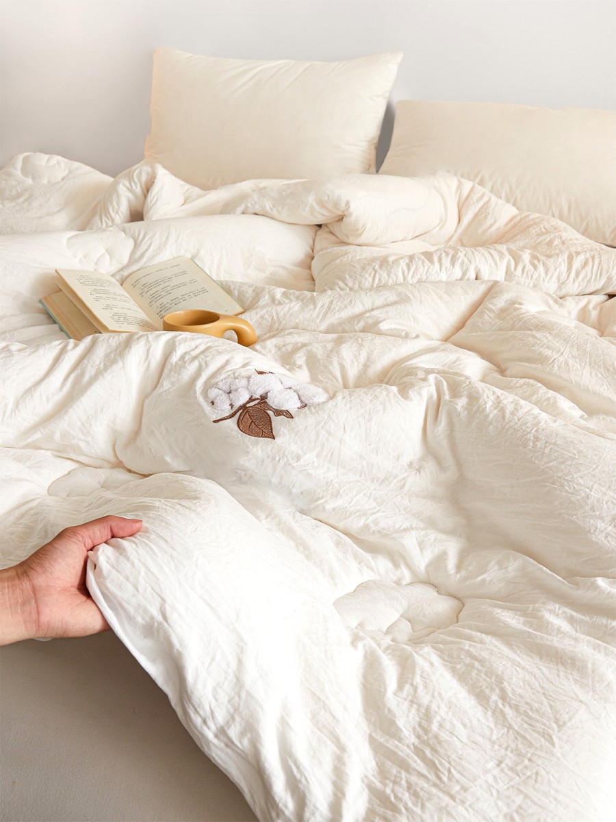 Fine quilting and secure filling: The comforter filling is secured by fine quilting, ensuring even distribution of cotton and preventing shifting when turning over, thus guaranteeing warmth, comfort, and durability.