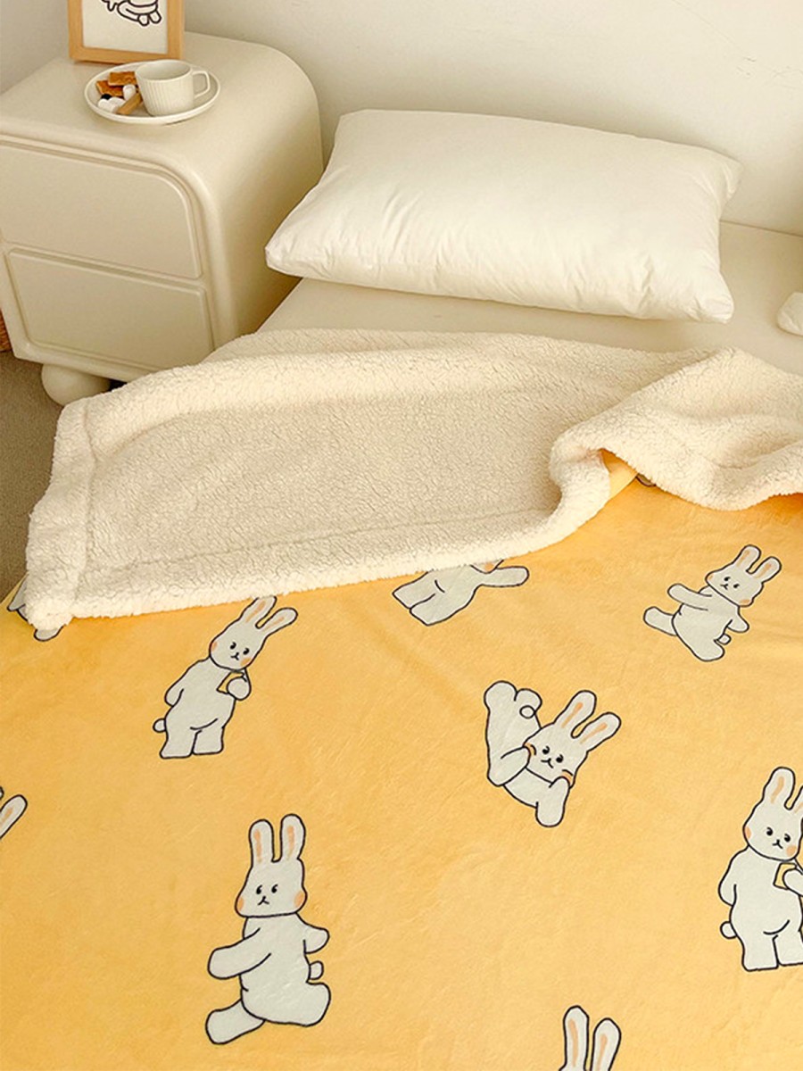 Versatile Application: Suitable for bedrooms, sofas, desks, travel, or transportation, this blanket is not only an essential for warmth but also a cute decorative piece to enhance the cozy atmosphere of any space. The warm creamy yellow base and adorable bunny print make this blanket a comforting companion in winter.