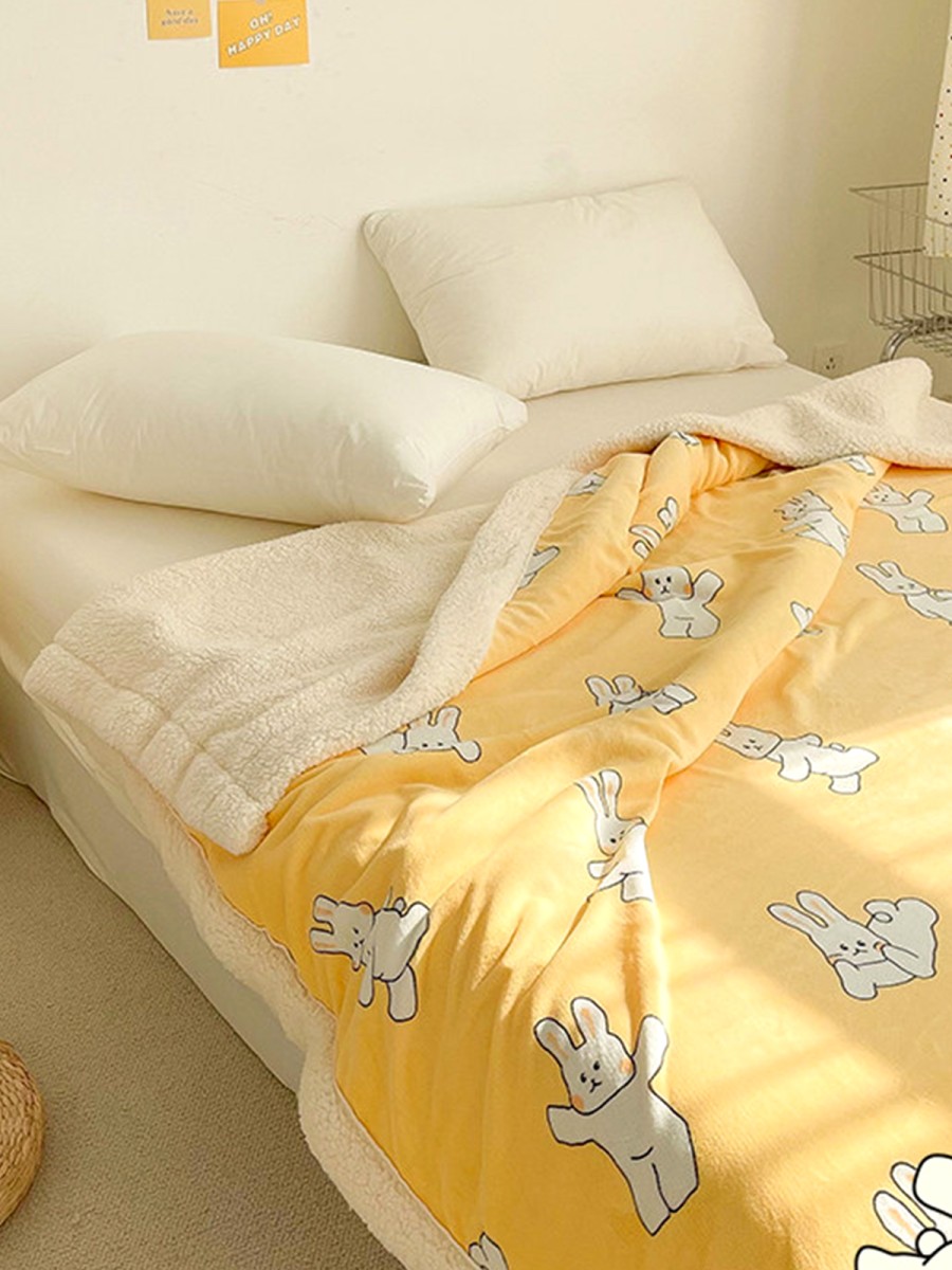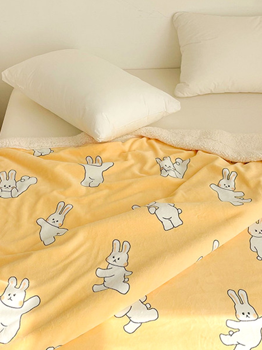 Adorable Creamy Yellow Bunny Print Design: This blanket features a warm creamy yellow base with a playful white bunny print, exuding cuteness and instantly filling the bedroom or living room with a childlike and comforting feel. The bunny print radiates a gentle warmth, providing comfort and happiness whether for a midday nap or a relaxing sofa getaway.