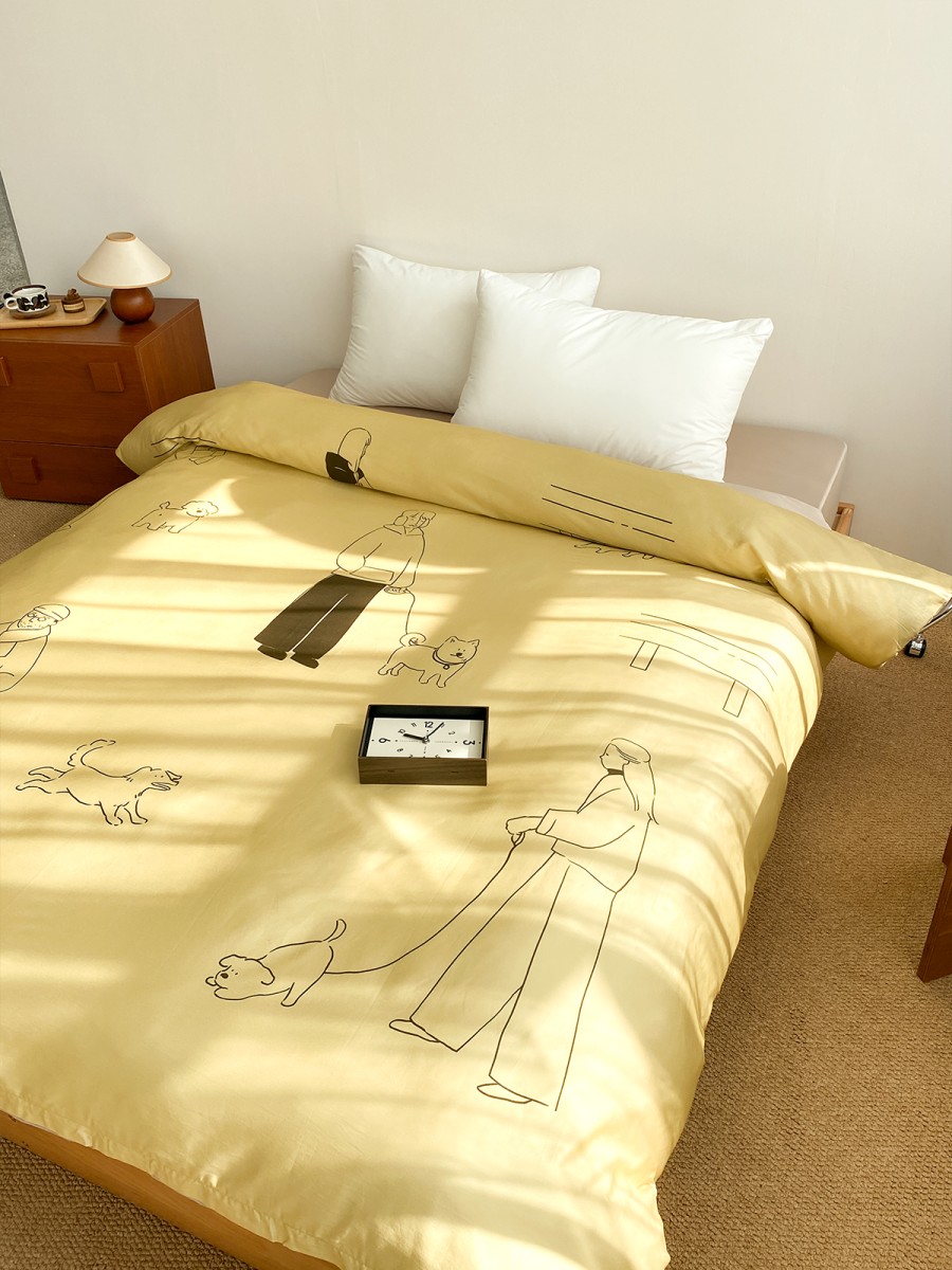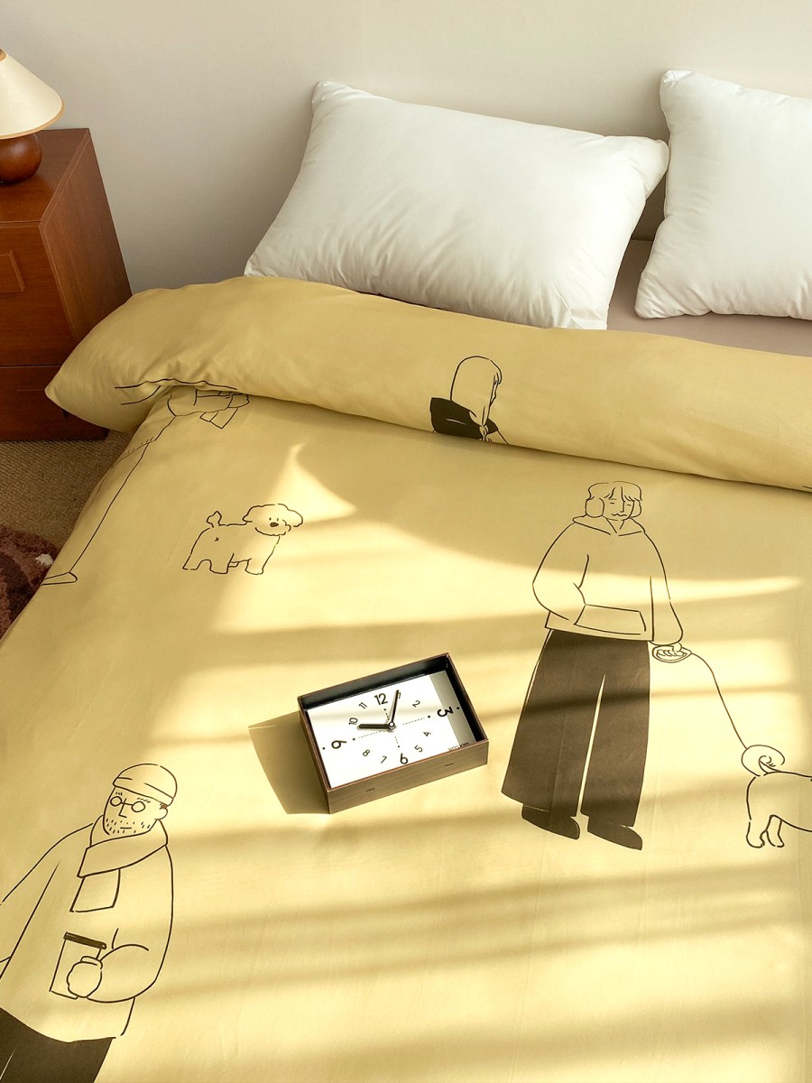A Healing Atmosphere Like Dusk: The duvet cover is predominantly warm yellow, inspired by the soft, gentle sunlight of dusk—understated yet warm. This color scheme is perfect for the bedroom, naturally softening the atmosphere and allowing you to relax as soon as you enter. The enveloping feeling created by the warm yellow is like adding a gentle filter to sleep, making the night quieter and more peaceful.