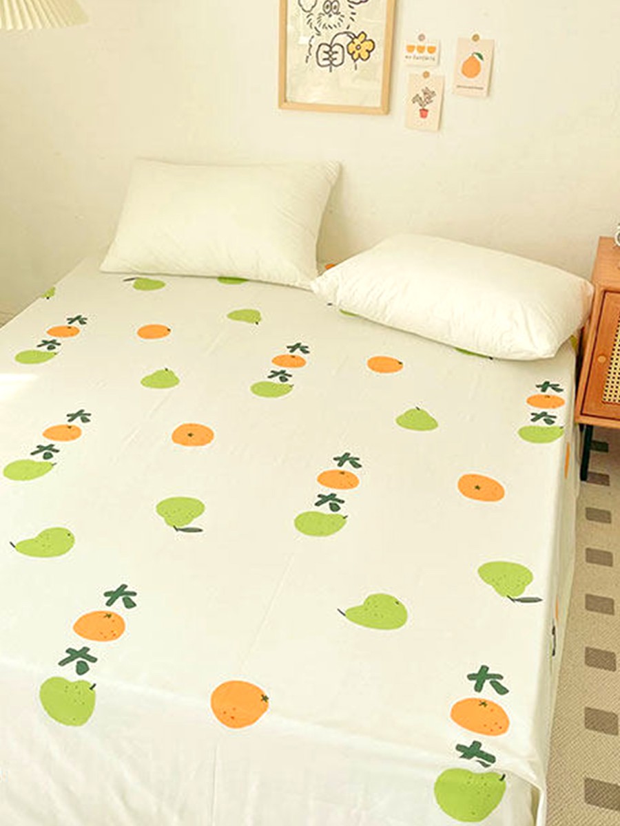 These bed sheets feature a vibrant and adorable print of sweet oranges and crisp pears. The fresh and natural colors create a light and lively illustration style. Fruit elements symbolize sweetness, harvest, and vitality, bringing life to the bedroom and creating a bright and cheerful atmosphere every time you lie down, adding positive emotional value to your sleep.