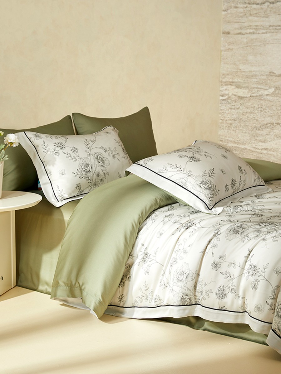 A side: Floral pattern with natural and refreshing colors, adding a touch of sophistication and warmth to the bedroom.