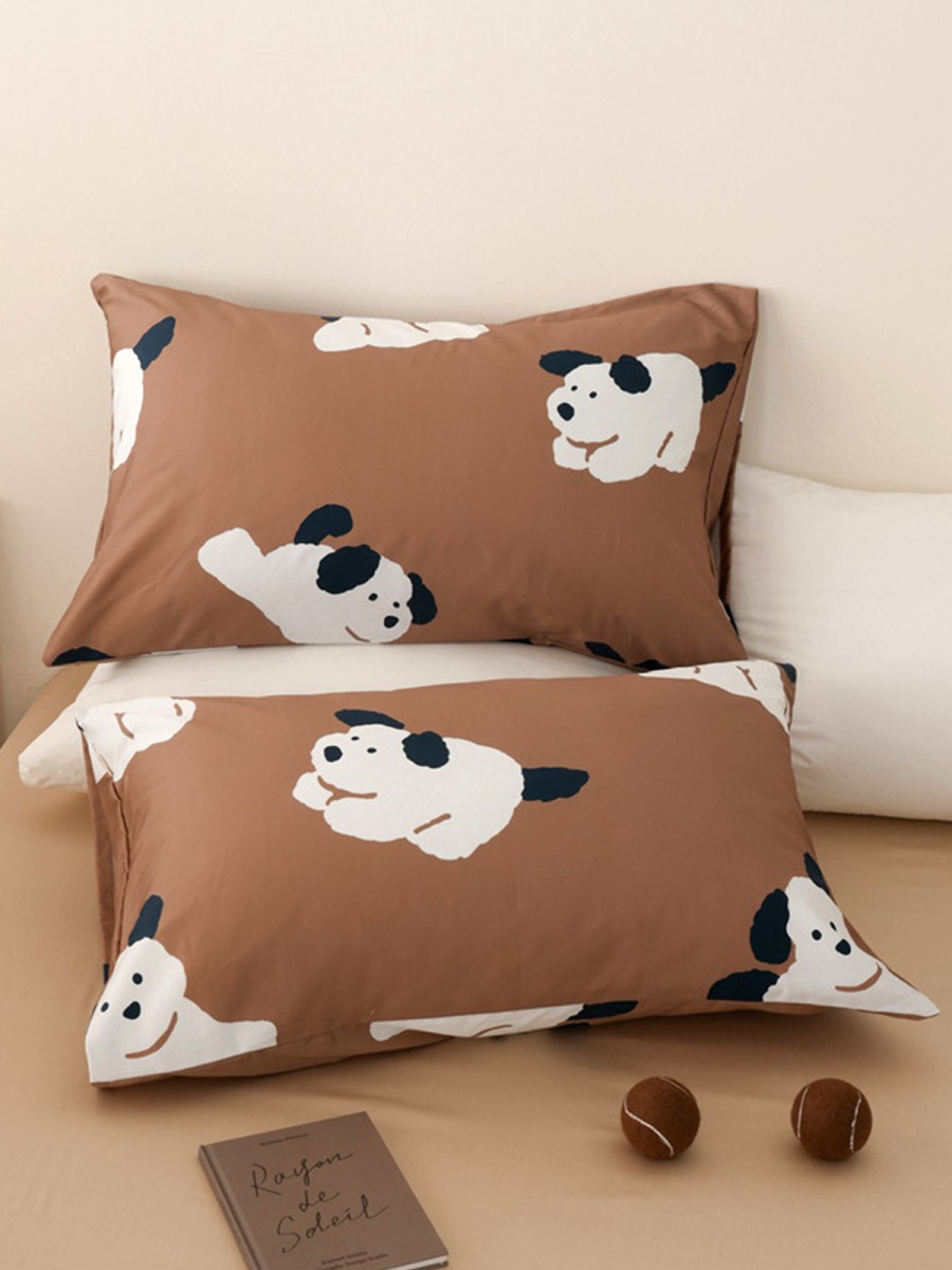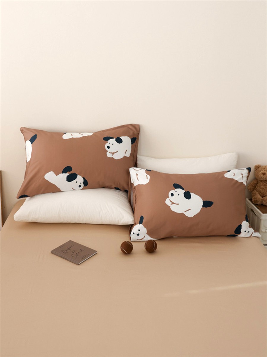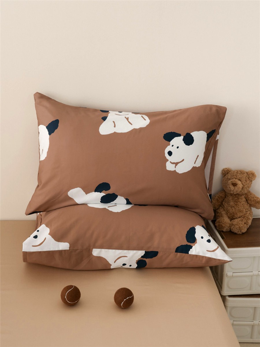 Creative Print Design: The black and white puppy print is lively and cute, adding fun and warmth to the bedroom. The brown background is calming and easy to match with various bedding styles.