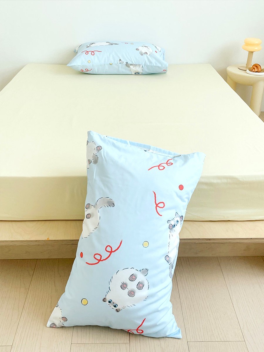 Adorable Ragdoll Cat Print Design: The pillowcase features a white Ragdoll cat as the main pattern, paired with a soft blue background, creating a fresh, cute, and warm feel. The lively pattern adds fun and intimacy to the bedroom, making relaxation more comfortable and enjoyable.