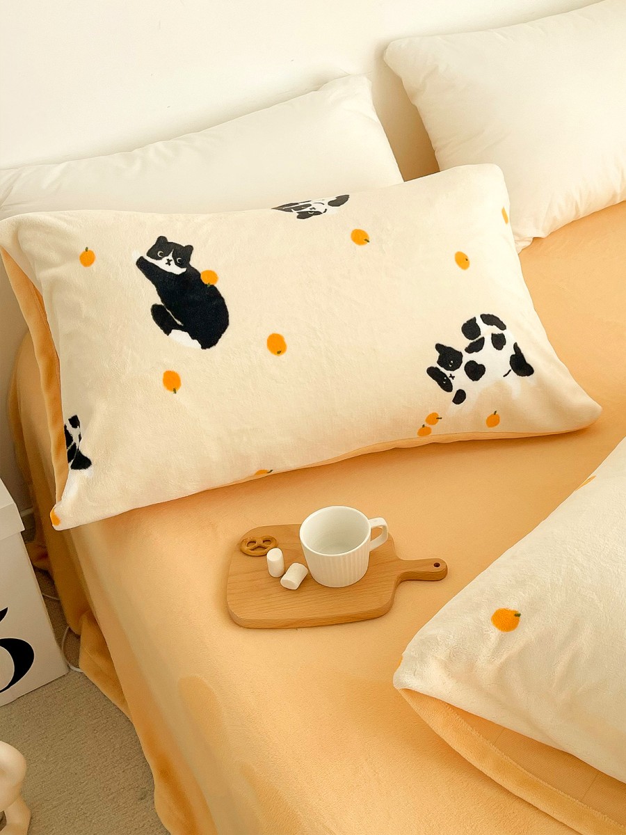 Creative Print Design: The cute and playful cow and cat print adds fun and warmth to the bedroom, full of childlike charm.