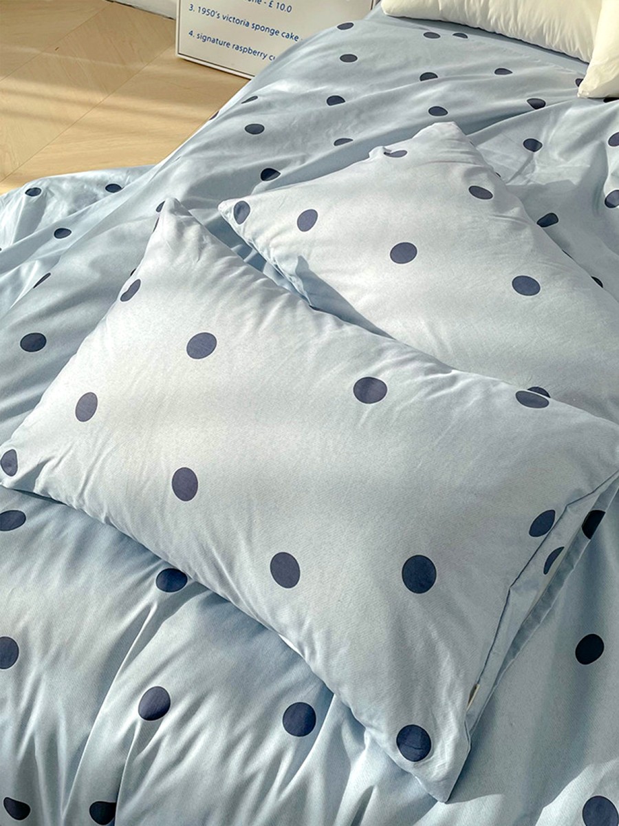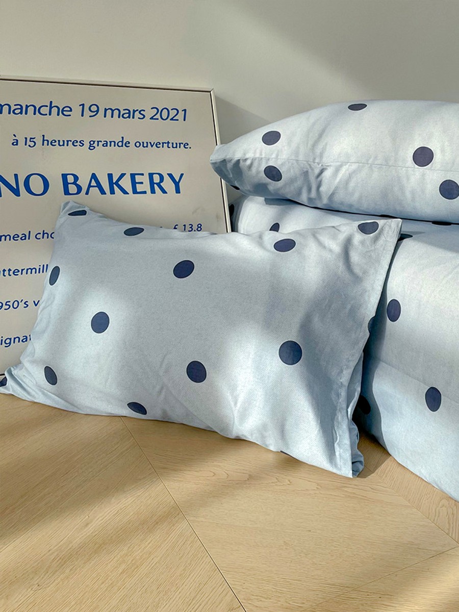 Fun Polka Dot Design: The pillowcase features a blue background adorned with circular polka dots, creating a simple yet playful look. Polka dots symbolize a relaxed and cheerful lifestyle, adding a touch of dynamism to the bedroom and enhancing the sleep experience with a soothing and calming effect.