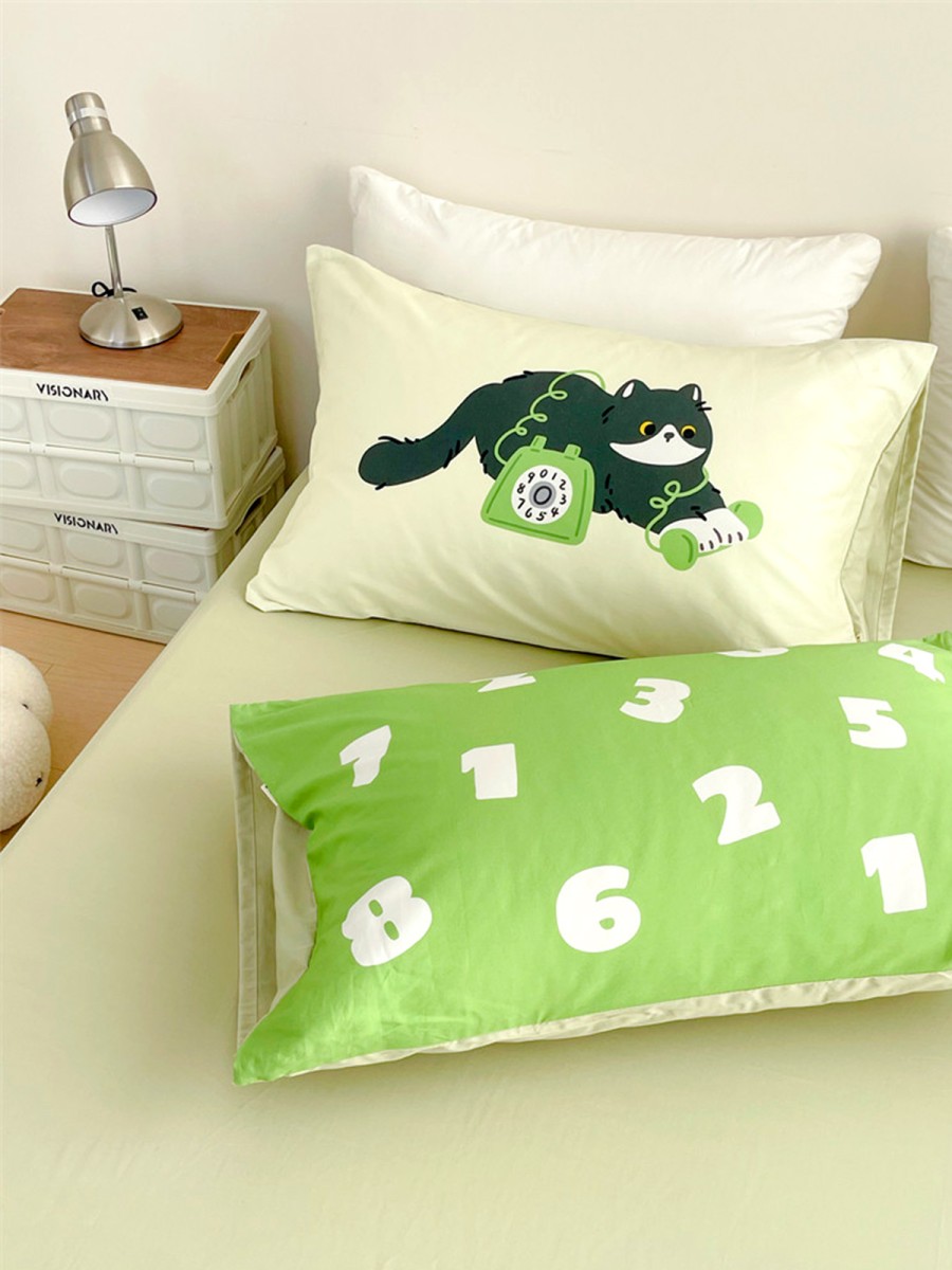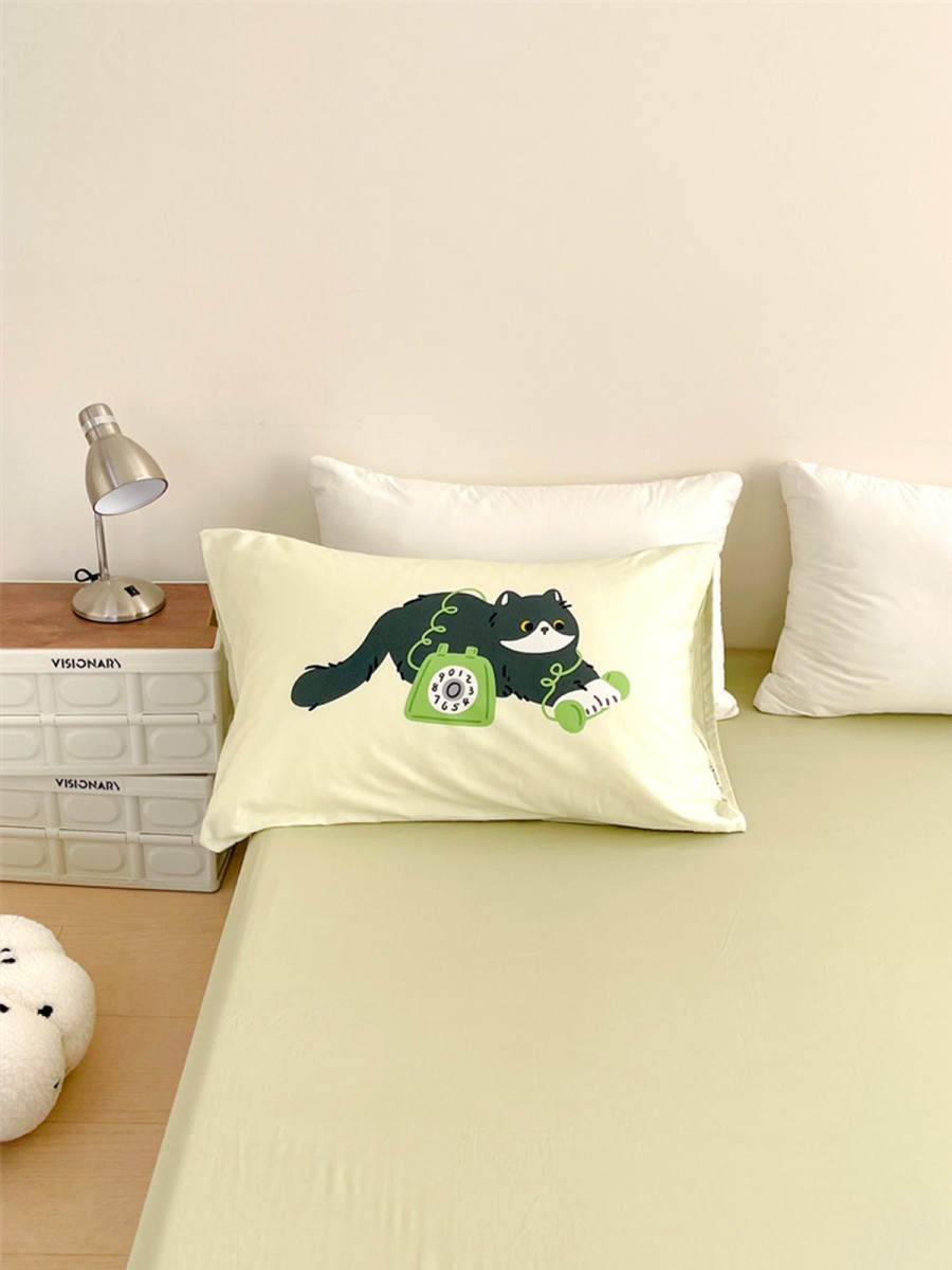 Simple and Fun Print Design: The pillowcase features a playful combination of a kitten and a telephone, with a simple yet story-like image. The adorable kitten paired with a retro telephone element injects a touch of playfulness and warmth into the restrained design. It's not overly sweet, but adds a relaxed and comforting atmosphere to the bedroom. It's timeless, durable, and aesthetically pleasing.