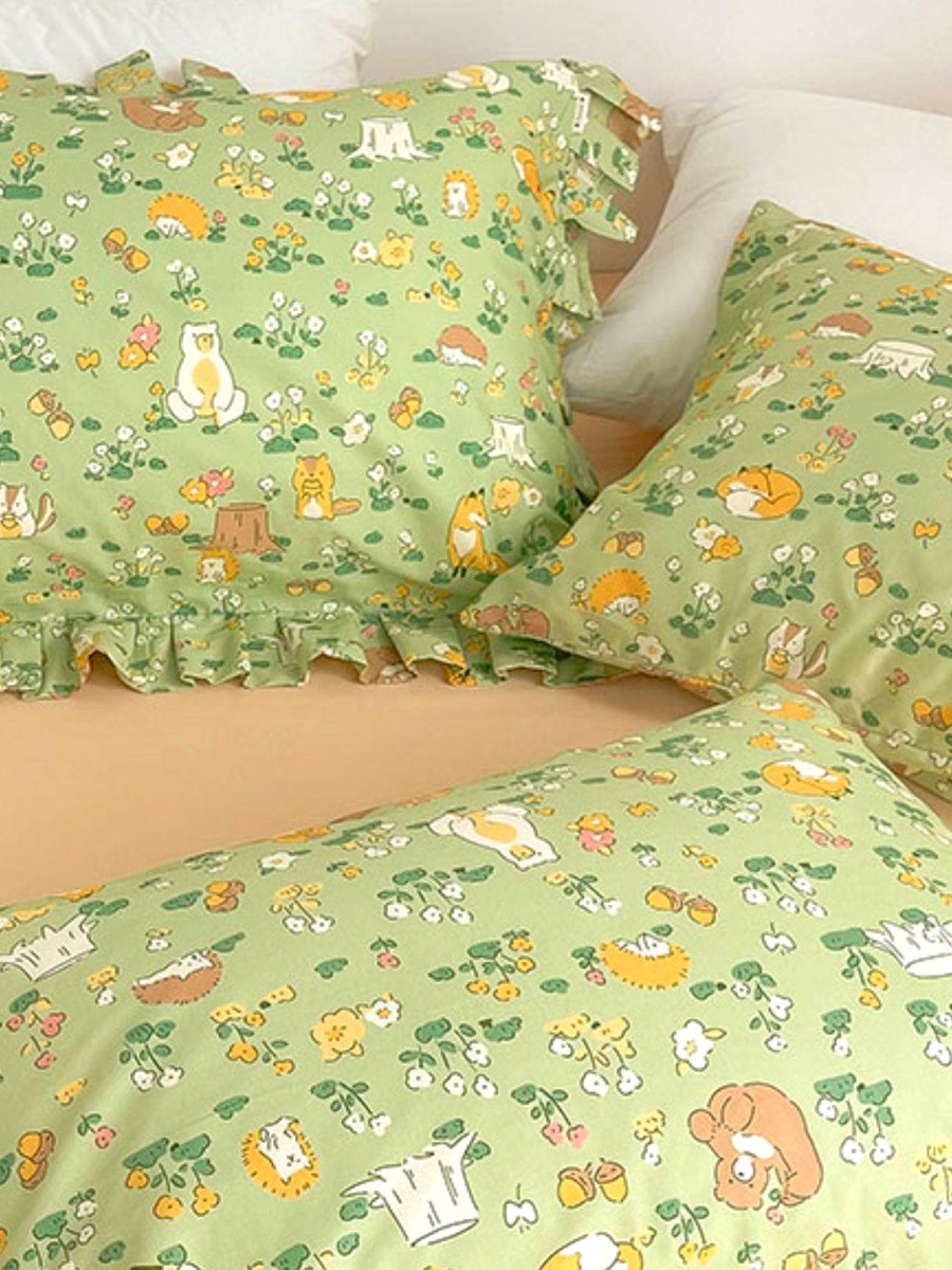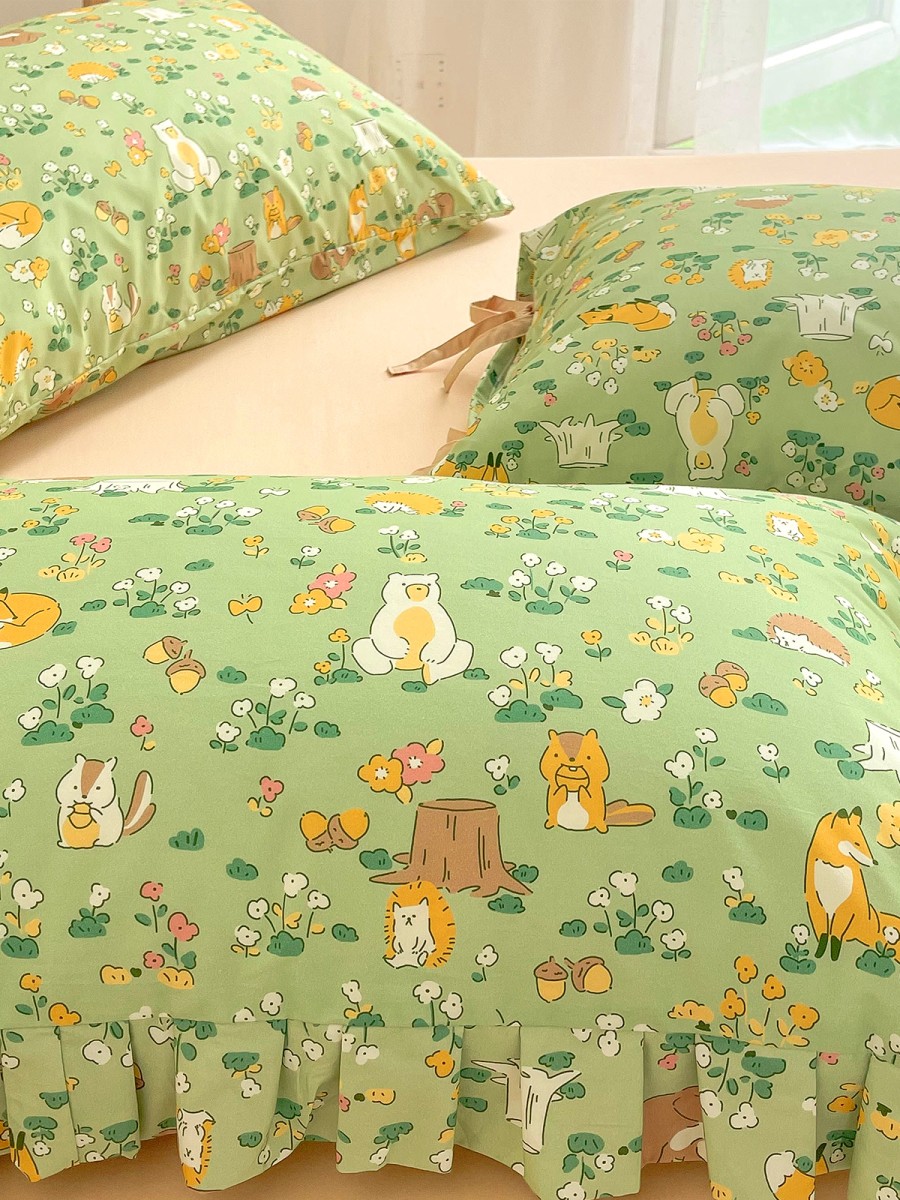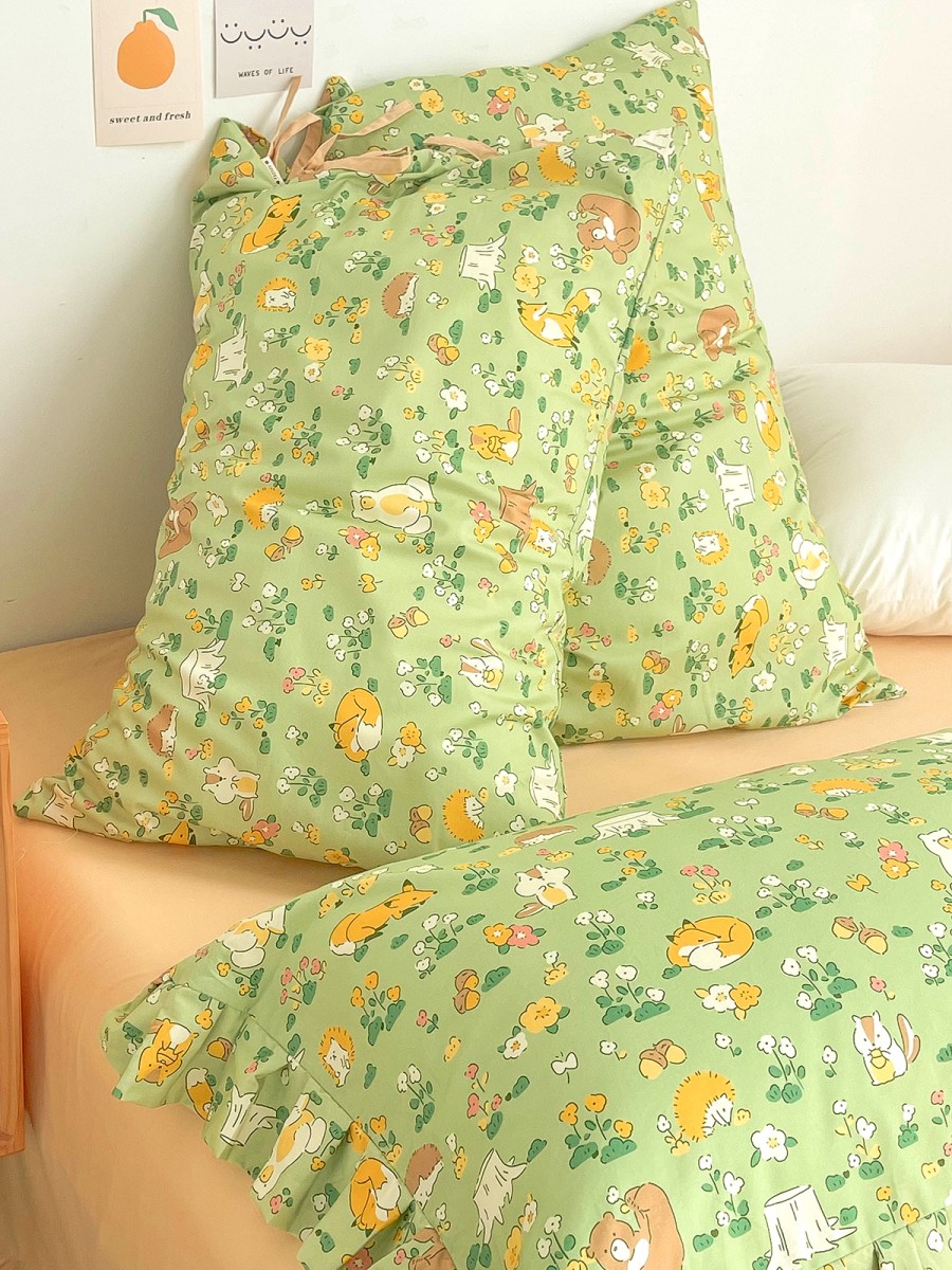 Fairy Tale Print Design: With a refreshing green base color, paired with small animal and floral elements, the print is natural and lively, full of fairy tale atmosphere, adding vitality and a sense of healing to the bedroom. It's cute without being overly sweet. Multiple styles available: Envelope, tie-up, and lace designs are offered to suit different usage habits and aesthetic preferences. Whether you prefer a clean and simple look or value a more decorative touch, you'll find a suitable style.