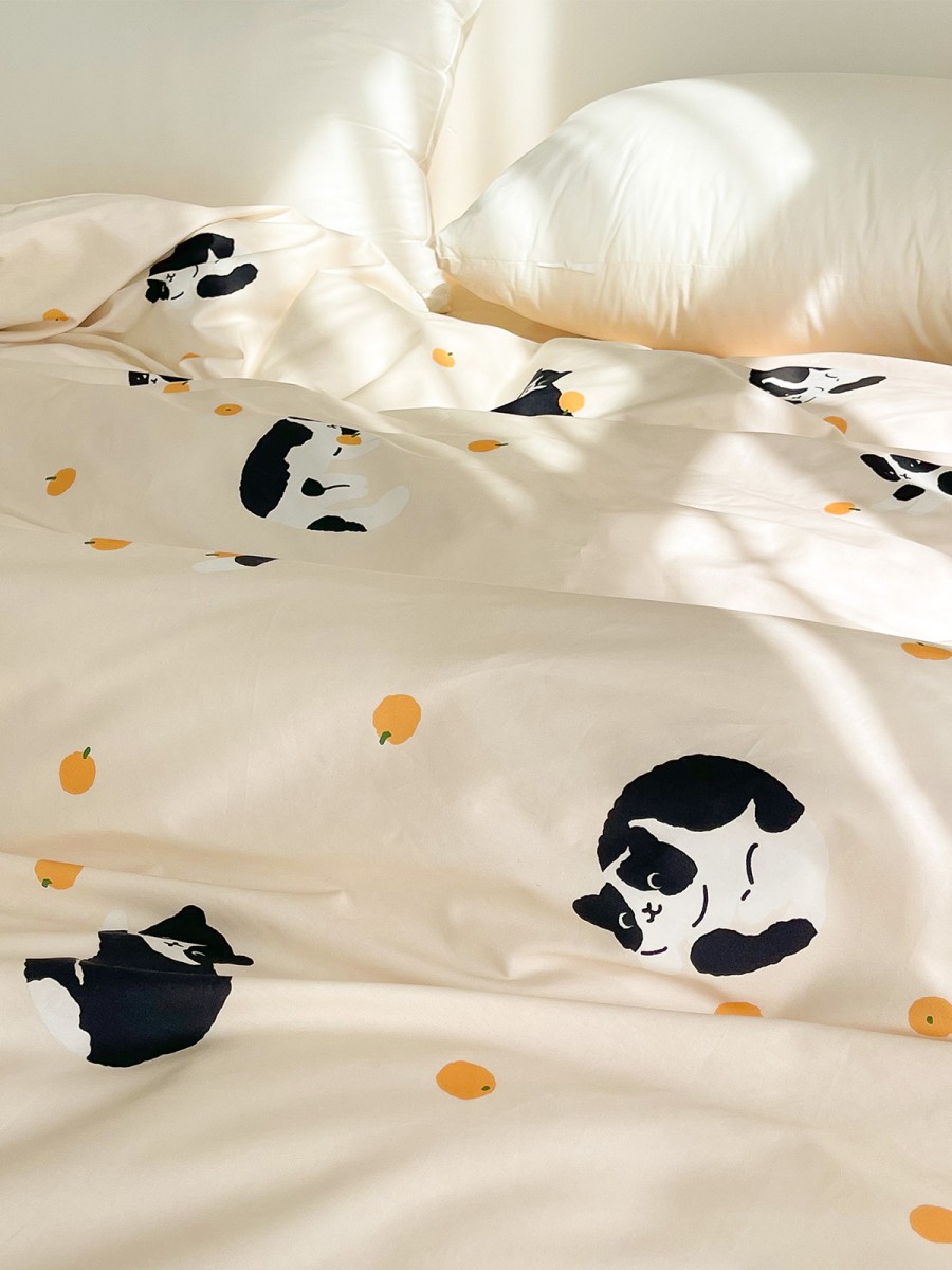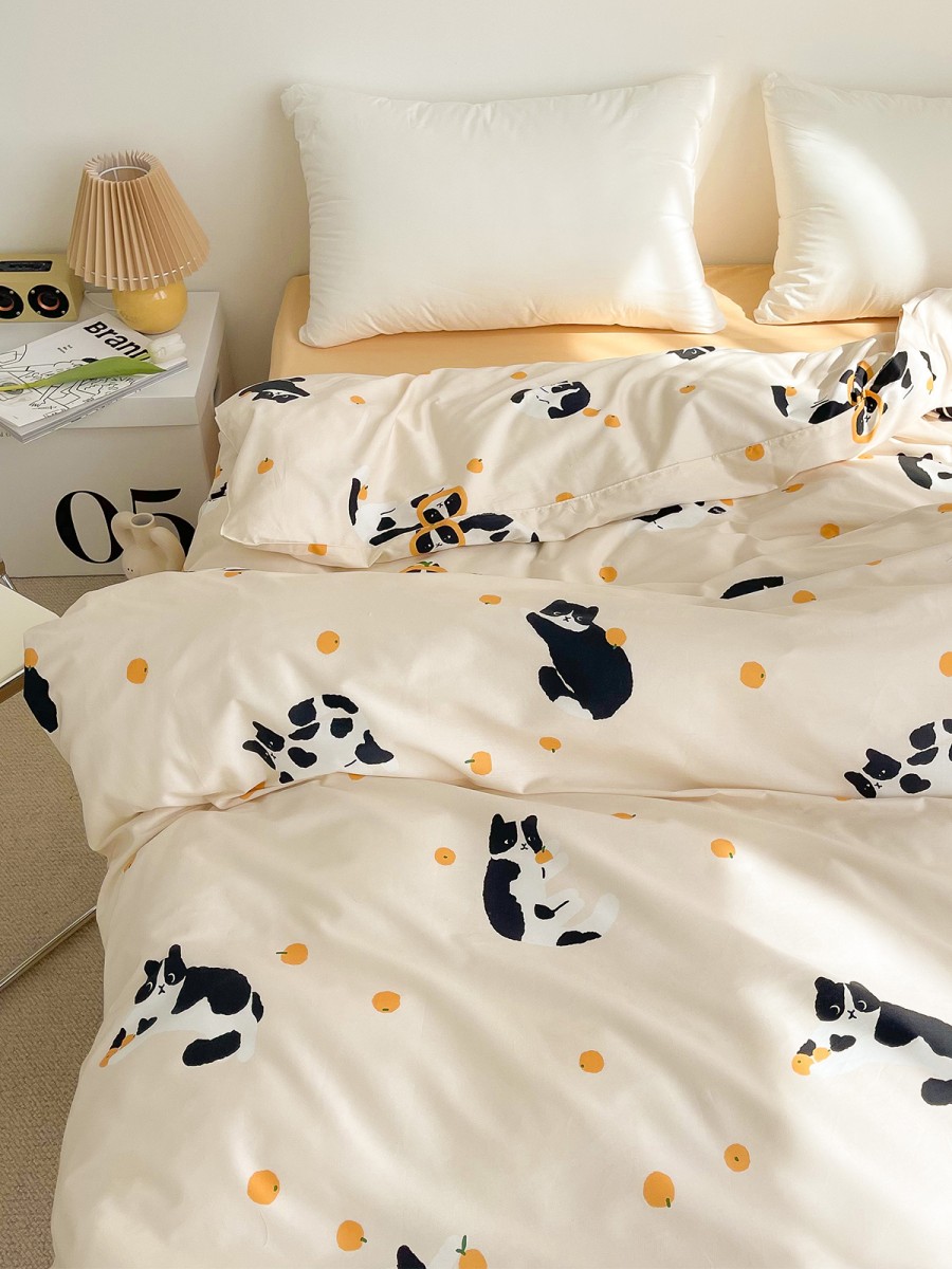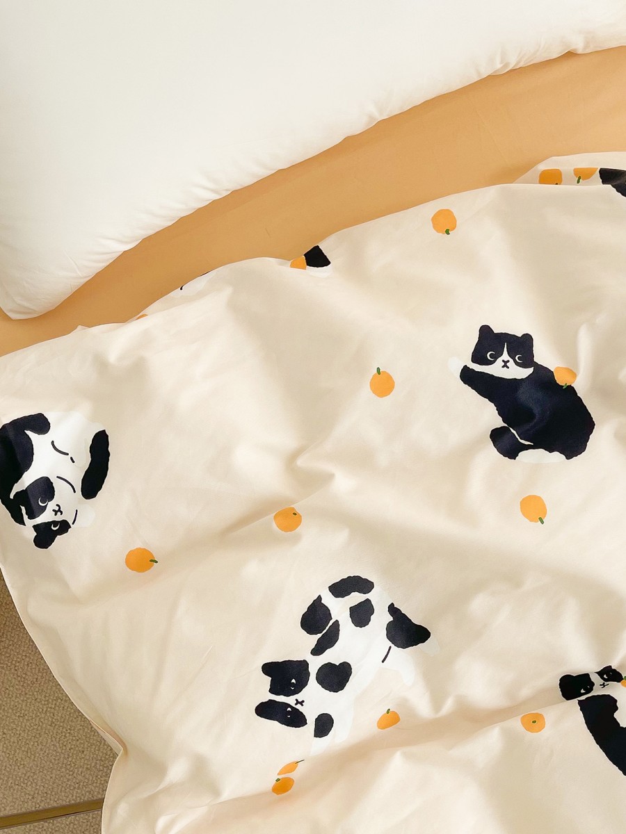 Fun Print Design: The duvet cover features a black and white kitten print, simple, cute, and fun, adding a warm and lively atmosphere to the bedroom, satisfying children and those who love cute styles.