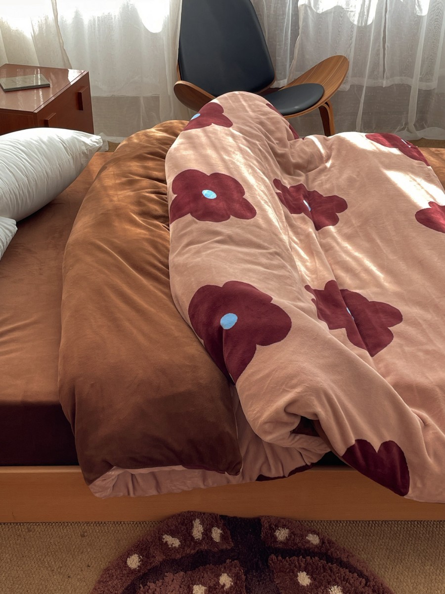 Combining practicality and aesthetics: This floral-print plush duvet cover features soft plush, sturdy drawstrings, and a high-quality zipper, ensuring both warmth and comfort while maintaining a beautiful bedroom aesthetic. Easily create a warm, romantic, and tidy sleeping space.