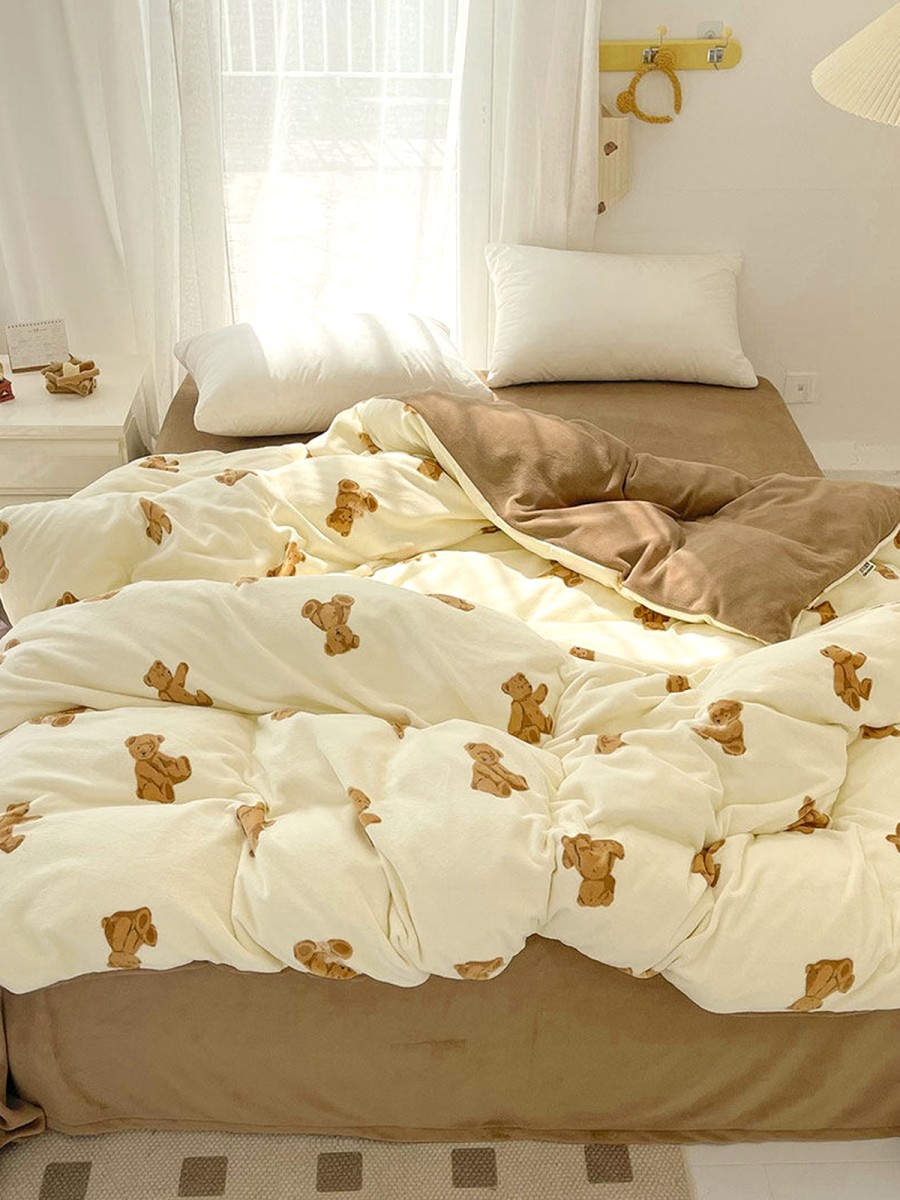 Adorable Bear Print Design: The front of the duvet cover features a lively cartoon bear print, its cute and playful design adding a relaxed and warm atmosphere to the bedroom. The soft, non-glaring colors are both childlike and suitable for all ages, making sleep more comforting.