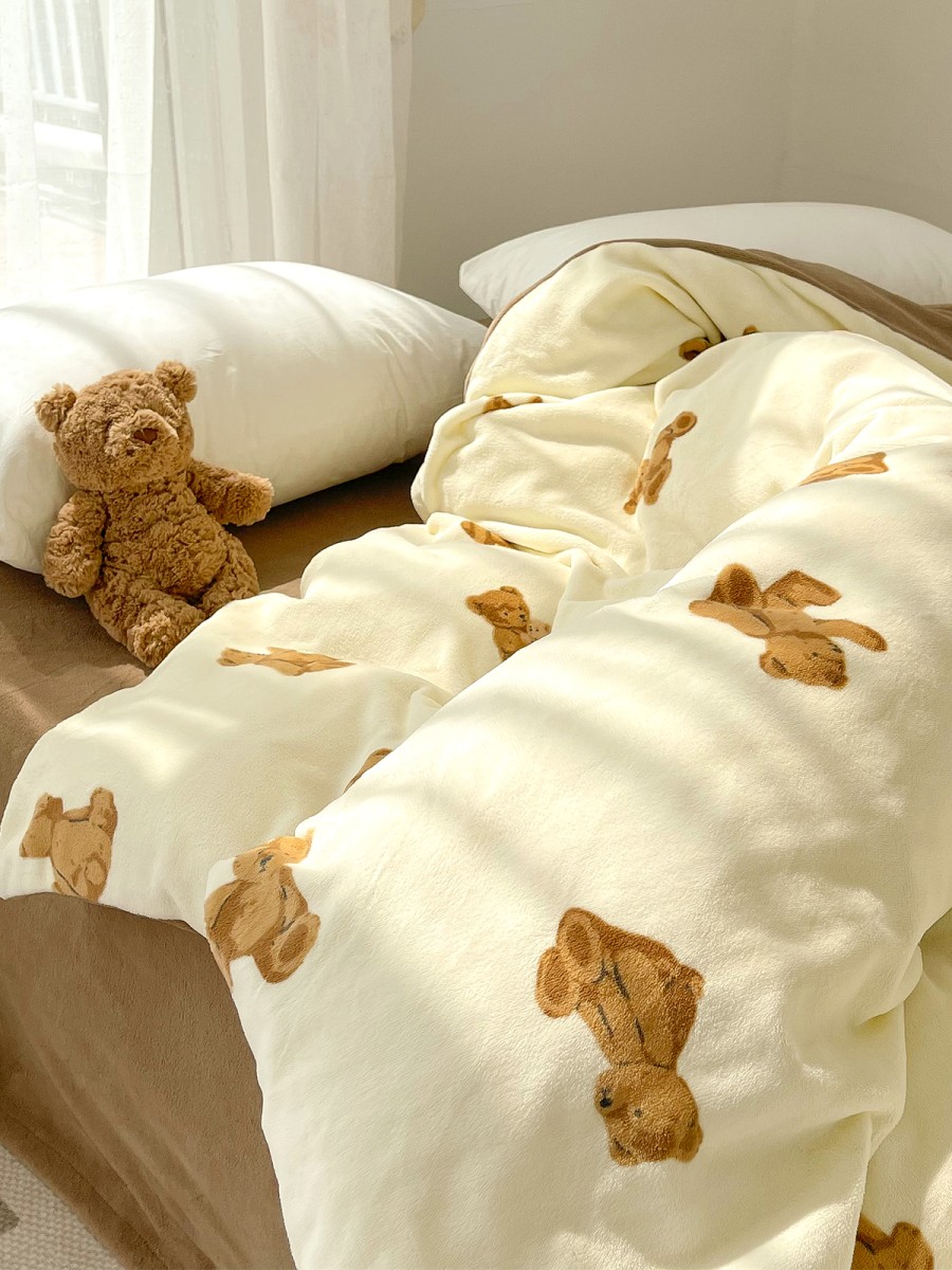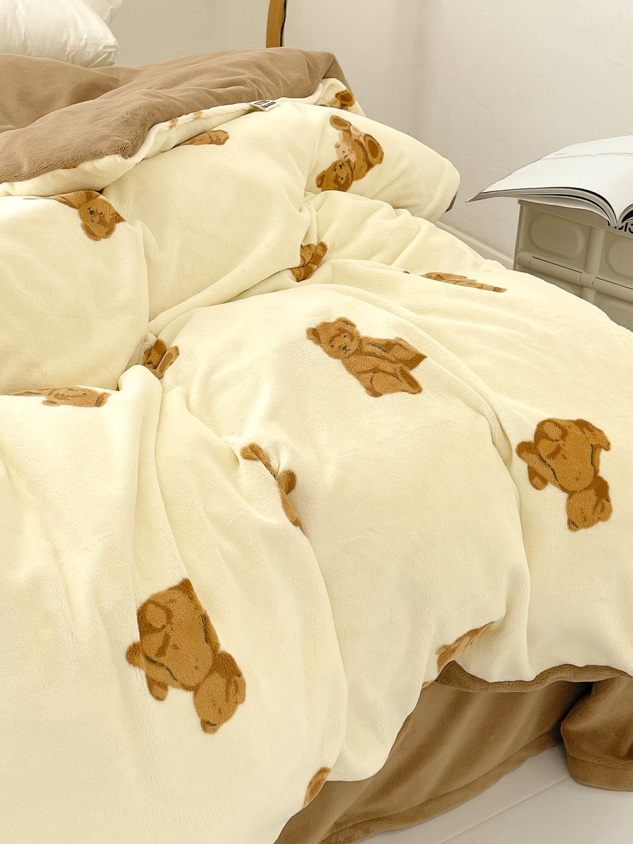 Overall Advantages: This cartoon bear plush duvet cover combines an adorable appearance, soft and comfortable plush fabric, anti-static design, and a sturdy duvet insert securing system, making it an ideal choice for creating a warm, clean, and comfortable bedroom space.