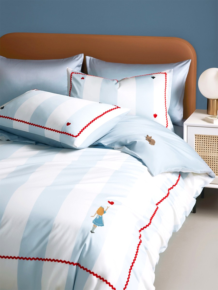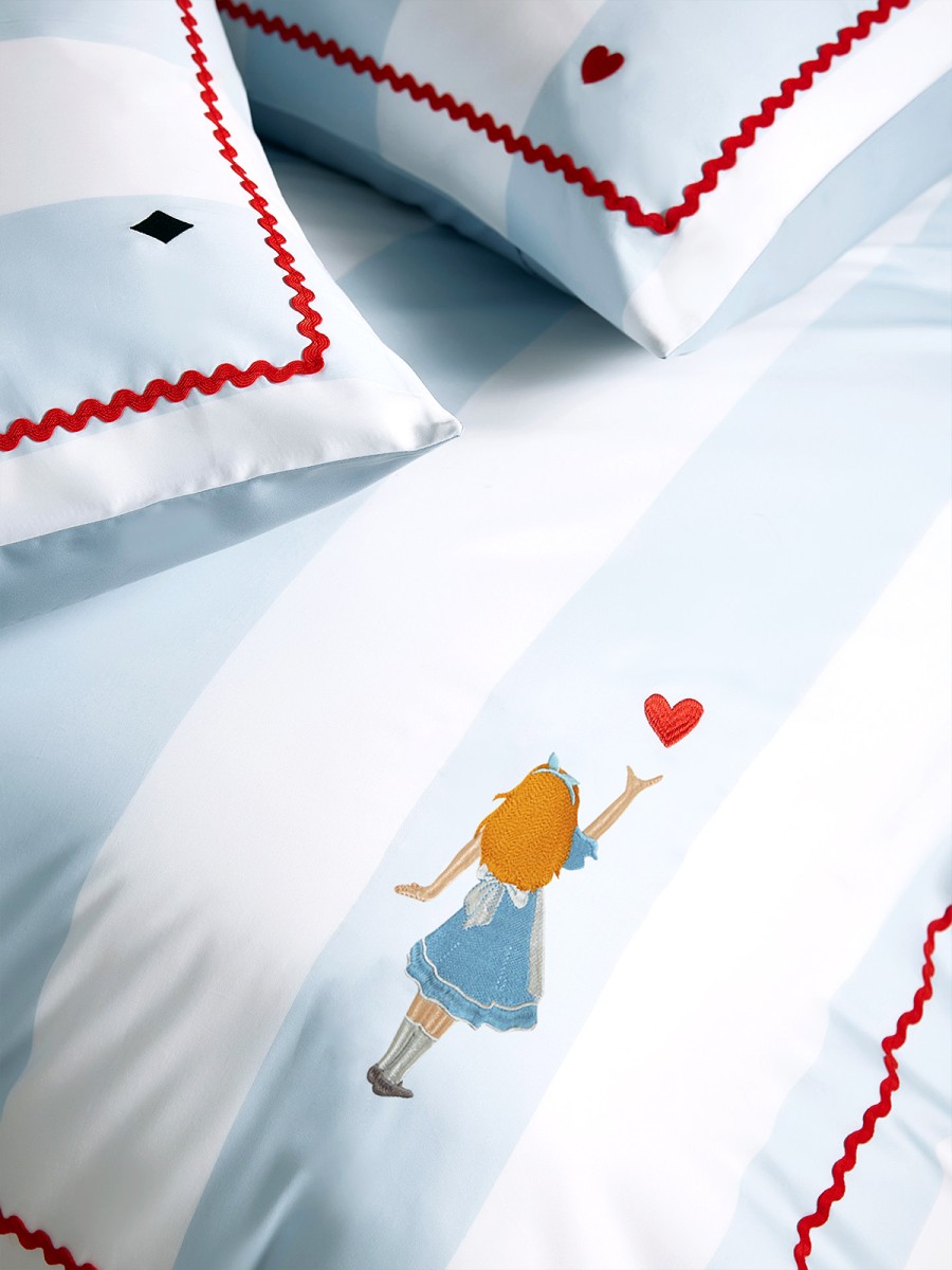 Duvet Cover: Embroidered with the silhouette of the classic character Alice, the design is both gentle and powerful, the embroidery exquisite and three-dimensional, enhancing the sophistication and fun of the bedroom.